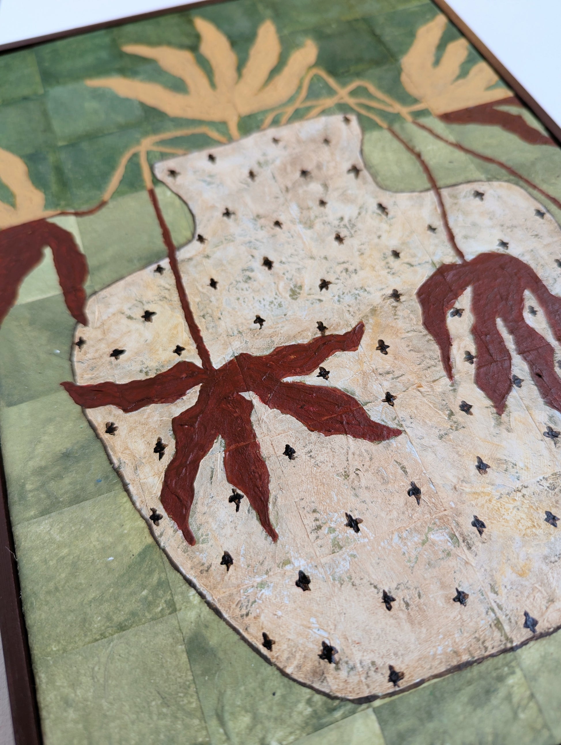 Artwork comes ready to hang in a hand painted wooden frame.