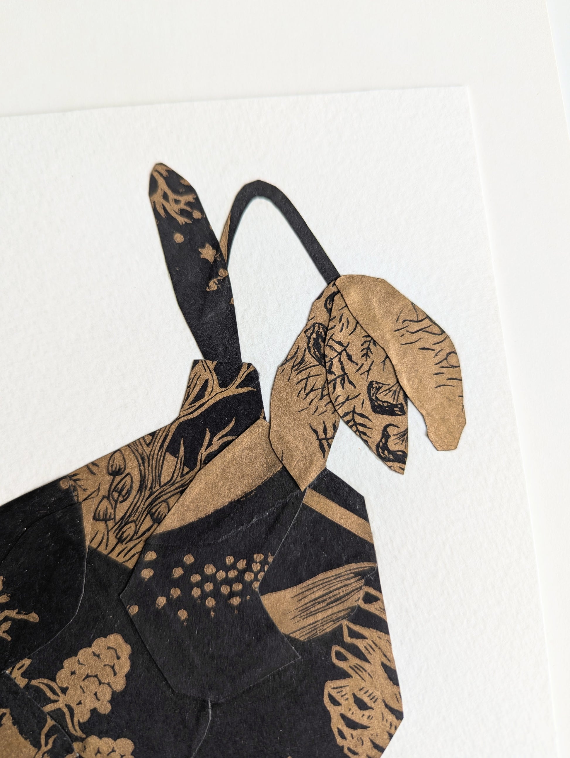 Collage made from the misprints of an old linocut, with the intention of giving new life to something that would otherwise end up in trash.