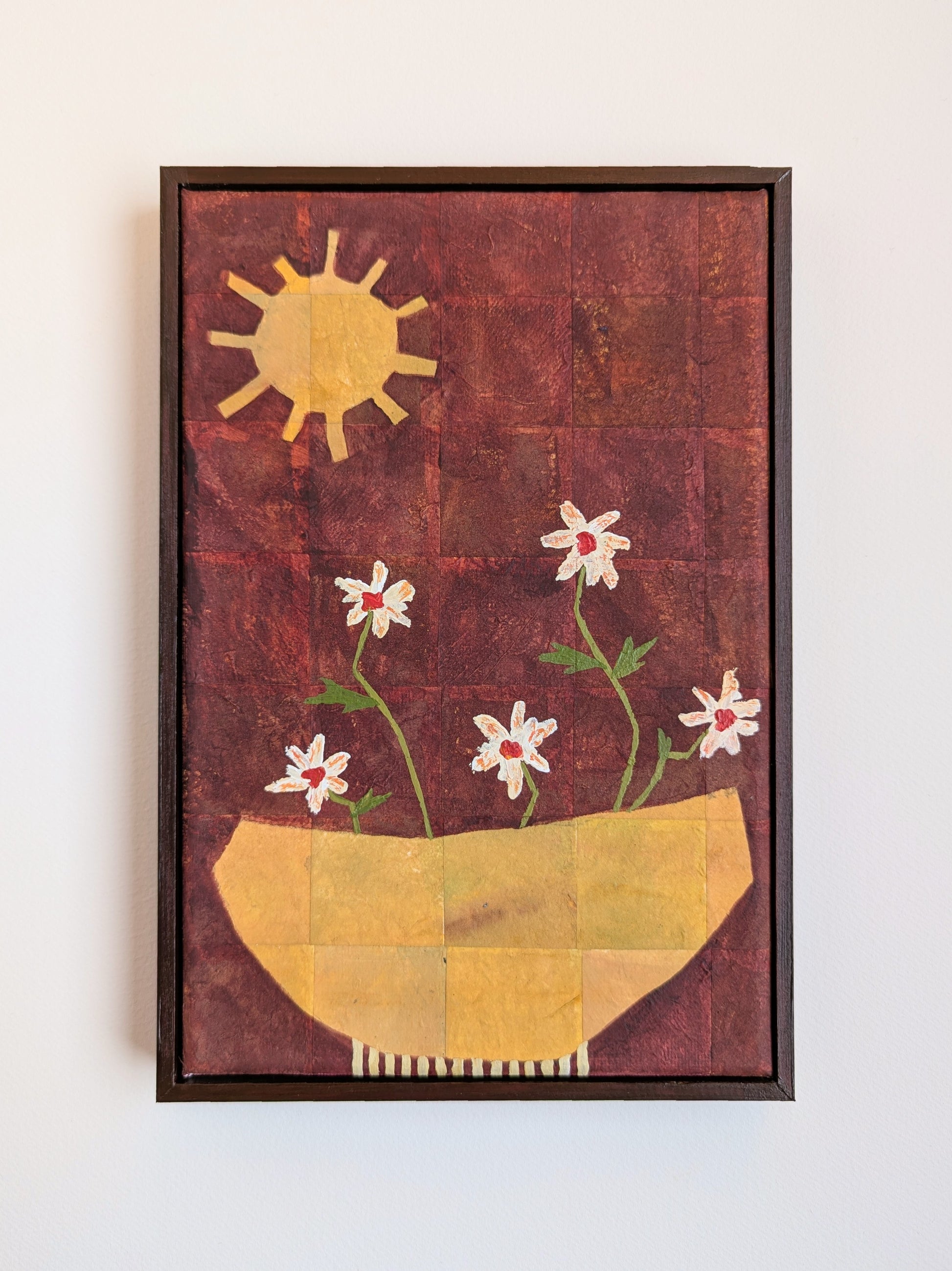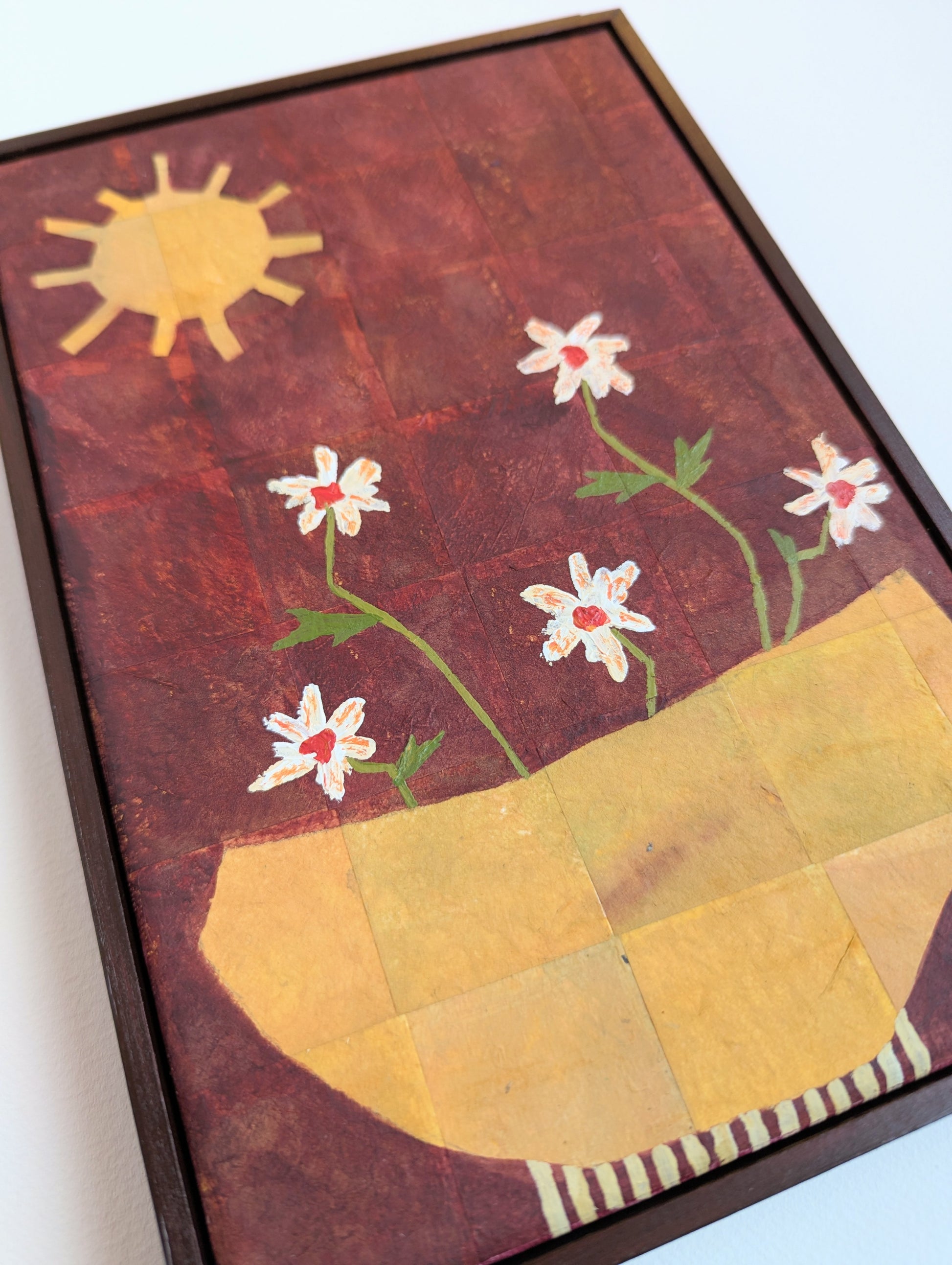 Artwork comes ready to hang in a hand painted wooden frame.